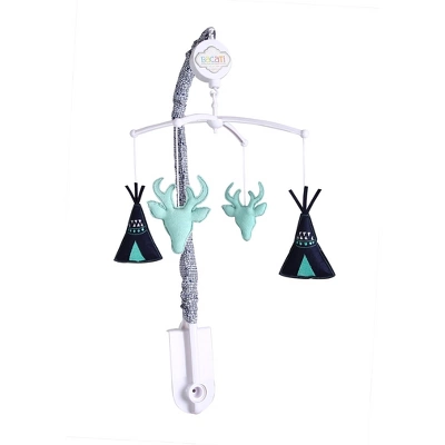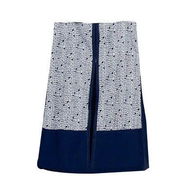- This Bacati 10-piece Crib Set Includes Reversible Comforter/Playmat (33 x 43 inches), Two Crib fitted sheets (52 x 28 x 6 inches), Crib Skirt/Dust ruffle (13 inch drop) Diaper Stacker (holds more than 30 newborn diapers), Window Valance (15 h x 56 w inches with 1.75 inch Rod Pocket), 3 pc Wall Hangings Set and Musical Mobile in fun, colorful and signature prints in 100 percent cotton 200 Thread Count percale fabrics. Designed in United States by Experienced Designers. Many coordinating items available to purchase separately in this Bacati Noah Mint Navy Bedding Collection.