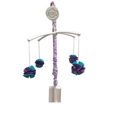 - This Bacati 10-piece Crib Set Includes Reversible Comforter/Playmat (33 x 43 inches), Two Crib fitted sheets (52 x 28 x 6 inches), Crib Skirt/Dust ruffle (13 inch drop) Diaper Stacker (holds more than 30 newborn diapers), Window Valance (15 h x 56 w inches with 1.75 inch Rod Pocket), 3 pc Wall Hangings Set and Musical Mobile in fun, colorful and signature prints in 100 percent cotton 200 Thread Count percale fabrics. Designed in United States by Experienced Designers. Many coordinating items available to purchase separately in this Bacati Paisley Isabella Purple Lilac Aqua Bedding Collection.