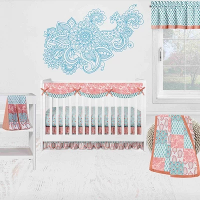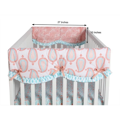Bacati – Sophia Paisley Aqua/Coral Set Of 2 Small Side Crib Rail Guard Covers