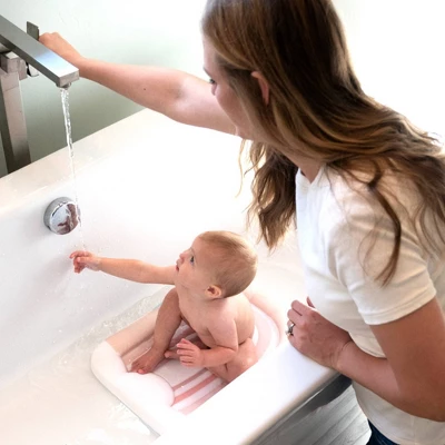 If you’re a new mother early in your baby registry search, or shopping for baby shower gifts for girls, baby sink bath accessories are an absolute must-have for a fun and enjoyable bath time for baby and parent. Blooming Bath’s Rainbow Bath Mat is a new way to think about baby bath essentials for newborns and babies up to six months. Instead of using a traditional, hard baby bath seat, make each sink baby bath a cuddly, safe time to bond, cushioned by the highest quality plush materials.