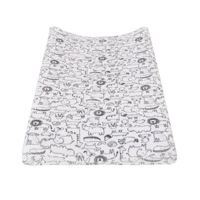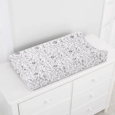 Black and White Safari Animals changing pad cover is a striking addition to your baby’s nursery, a safari animal pattern will decorate your baby’s changing table. The universal 32” x 16” cover is a perfect fit for most curve and block shaped changing pads. A great pad replacement cover for gender neutral nursery décor.