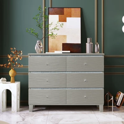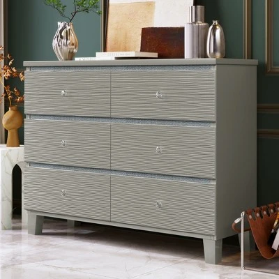 - This dresser offers ample storage options with six identically sized drawers, providing plenty of space to store everyday essentials, cosmetics, or clothing.
