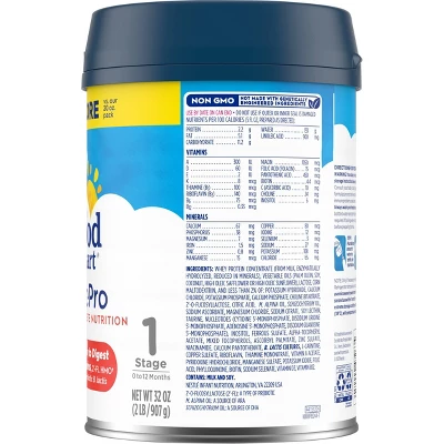 Gerber Good Start GentlePro Powder Infant Formula is modeled after the nutrition and gentleness of breast milk. This Gerber baby formula includes Comfort Proteins, which are small, easy-to-digest proteins. DHA, prebiotics and probiotics provide the same components found in breast milk. This Gerber formula promotes digestive health. Made with non-GMO ingredients, this Gerber baby food promotes brain and eye development and contains no artificial growth hormones. This Gerber Stage 1 baby food is for ages 0-12 months. Packaged in a recyclable container, this baby formula powder is easy to store.