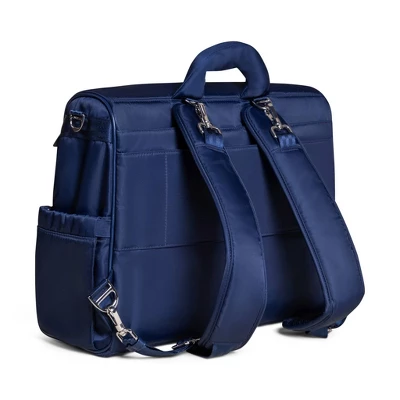 The Satchel from JuJuBe features a lightweight, versatile construction with 14 storage compartments, removable stroller straps, and a trolley sleeve for travel, all in a distinctive silhouette. Convertible straps make it wearable in three different ways—as a backpack, tote, or messenger bag—so you can keep diapers, clothes, snacks, toys, and more organized in style and comfort. The insulated bottle pocket keeps drinks and snacks at the perfect temperature, while the stain-resistant fabric, mold- and bacteria-resistant lining, and durable metal hardware make it sturdy enough for any adventure. There’s no need to sacrifice on the fashion front either—the artfully designed Satchel is as chic and sophisticated as it is functional.