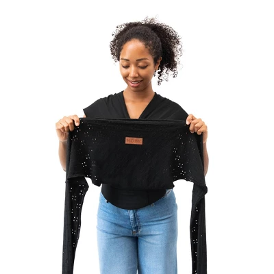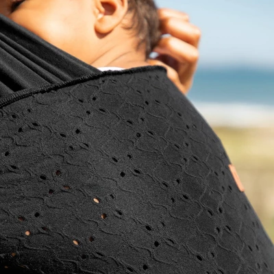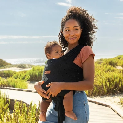 Now available in an exclusive collaboration with Petunia Pickle Bottom. For almost 20 years, Petunia Pickle Bottom has celebrated the joy of parenthood through the trend-setting prints and palettes of their diaper bags and accessories. The designers on the Petunia Pickle Bottom team have styled the Easy-Wrap in a fun and fashionable black eyelet with a vegan leatherette accent logo.