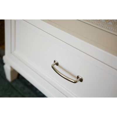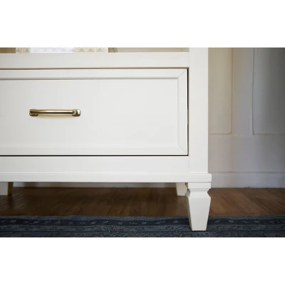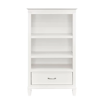 The Darlington Bookcase is a classic French country inspired storage solution for the home. The elegant bookcase features two open and adjustable shelves for displaying your child’s many books and treasures; customize and style it as baby grows into a toddler. With its classic raised molding, delicate feet detailing, and satin nickel accent drawer pull, the Darlington is an effortless piece to incorporate within the home.