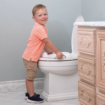 Make potty training a go with Nuby’s Safety Toilet Seat Trainer! This training seat stays in place with a non-slip rubber grip for security while your little one is seated on the throne. The Easy Grip handles make placement and removal as easy as 1, 2, 3, so your little one can even set it up themselves! The integrated splash guard helps keep messes to a minimum, making the training seat easy to clean. The convenience of removal makes it perfect for transport for the weekend at Grandma’s. Your little one will feel like a big kid using Nuby’s Safety Toilet Seat Trainer!