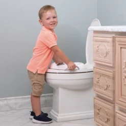 Nûby’s Step-up Stool is clean and modern, and it holds up to holds up to 800lbs/360kg! Perfect for toddlers and young children, whether toilet training or reaching a sink! Our Step-Up Stool is easy to store thanks to its compact size. Simply store it under the sink or in a cupboard when not in use. Additionally, the convenient, built-in side handles of the Nûby’s Step-up Stool make for easy gripping when children need to move and adjust the stool for themselves.