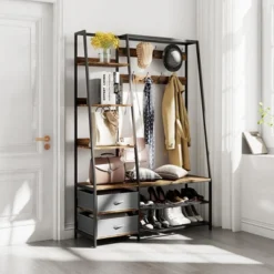 Tangkula 6-in-1 Freestanding Hall Tree Coat Rack W/ Bench & Fabric Dressers Rustic Brown