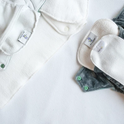Each Rumparooz 6r Soaker is a pair of two inserts – a long, full size insert and a smaller contoured insert – that are inserted into the pocket of the Rumparooz or any pocket style diaper. The inserts can be arranged in six different configurations to give maximum adjustability to the absorbency and the fit of the diaper. The Rumparooz 6r Soaker comes in a variety of fabrics: microfiber, hemp and bamboo.Setting 1: Contoured insert (newborn size setting) Setting 2: Full Size insert, snapped over (small size setting) Setting 3: Full Size insert, unsnapped (medium and large size setting) Setting 4: Contoured insert snapped to the middle of the Full Size insert (added absorbency for girls)Setting 5: Contoured insert snapped to the front of the Full Size insert (added absorbency for boys) Setting 6: Contoured insert snapped to the Full Size insert, snapped over position (added absorbency small size setting, boy or girl)