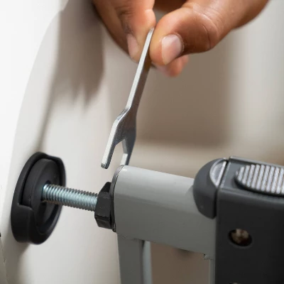 - Fits in doorways or hallways with easy no-drill pressure mount system
