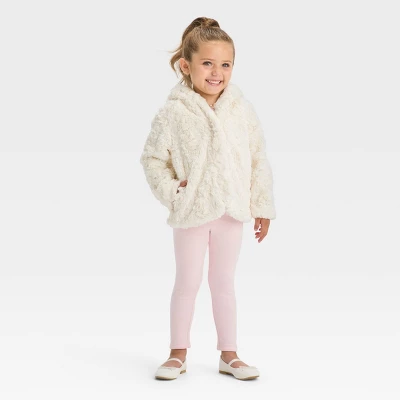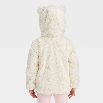 Keep your toddler snug in sweet style by dressing them in this Faux-Fur Bear Jacket from Cat & Jack™. This off-white long-sleeve jacket fashioned in a regular fit features a hooded neckline with attached ear details for a cute bear-themed look and front snap buttons for easy dressing. The faux-fur construction with taffeta full lining keeps them in cozy comfort. Plus, the two side pockets add functional style.