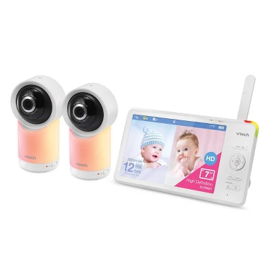 Watch over your little one at home on the 2 Camera 7-inch, 720p High-Definition LCD Parent Unit Display or remotely on your smartphone with the VTech RM7766-2HD Smart WiFi video baby monitor. View rooms from top to bottom with the 100-degree vertical tilt angle and from side to side with the 360-degree horizontal pan capability. Magnify details with the industry’s best 30x times zoom on the mobile app or 24 times on the viewer up to eight times and monitor room temperature and humidity levels directly from the Parent Unit Display. Plus, see your baby as clear as day, even in ultralow light, thanks to the automatic infrared Night Vision.